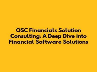 What Exactly is OSC Financials Solution Consulting?