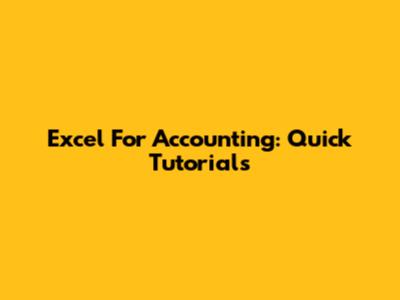 Excel For Accounting: Quick Tutorials