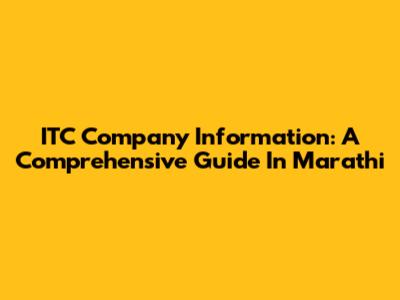 ITC Company Information: A Comprehensive Guide In Marathi