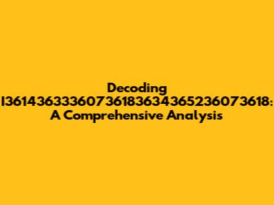 Decoding I36143633360736183634365236073618: A Comprehensive Analysis