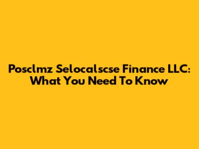 Posclmz Selocalscse Finance LLC: What You Need To Know