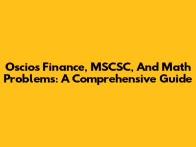 Oscios Finance, MSCSC, And Math Problems: A Comprehensive Guide