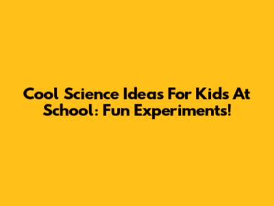 Cool Science Ideas For Kids At School: Fun Experiments!