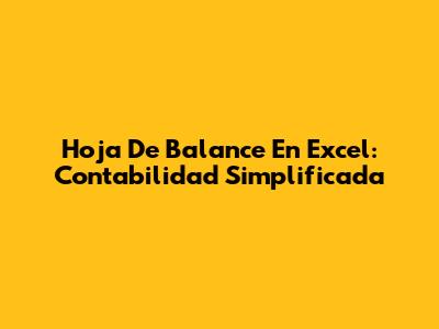 Hoja De Balance En Excel: Contabilidad Simplificada