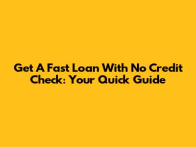Get A Fast Loan With No Credit Check: Your Quick Guide
