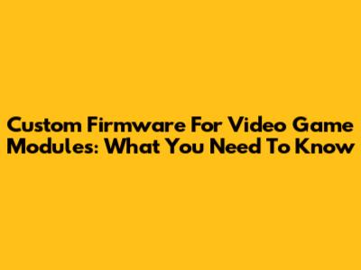 Custom Firmware For Video Game Modules: What You Need To Know