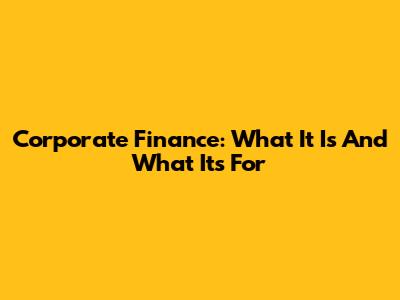 Corporate Finance: What It Is And What It's For