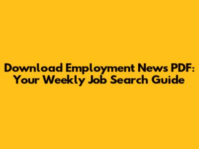 Download Employment News PDF: Your Weekly Job Search Guide
