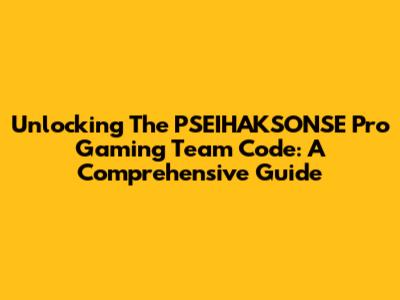 Unlocking The PSEIHAKSONSE Pro Gaming Team Code: A Comprehensive Guide
