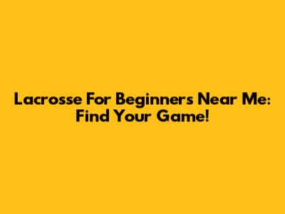 Lacrosse For Beginners Near Me: Find Your Game!