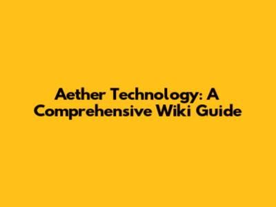 Aether Technology: A Comprehensive Wiki Guide
