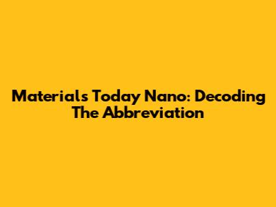 Materials Today Nano: Decoding The Abbreviation