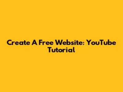 Create A Free Website: YouTube Tutorial
