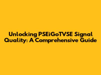 Unlocking PSEiGoTVSE Signal Quality: A Comprehensive Guide
