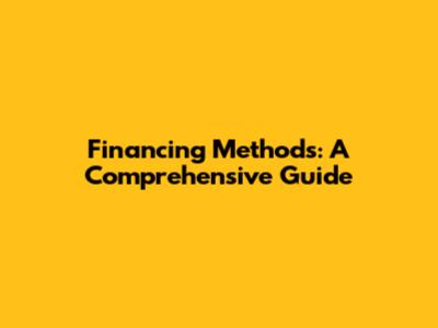 Financing Methods: A Comprehensive Guide