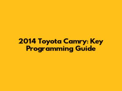 2014 Toyota Camry: Key Programming Guide