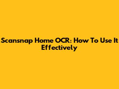 Scansnap Home OCR: How To Use It Effectively