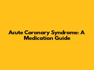 Acute Coronary Syndrome: A Medication Guide