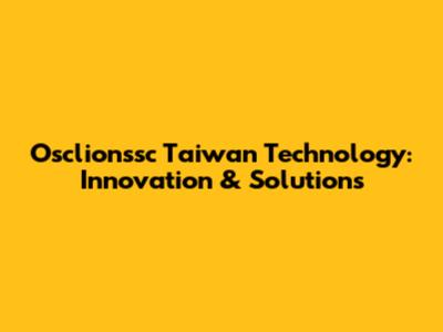 Osclionssc Taiwan Technology: Innovation & Solutions