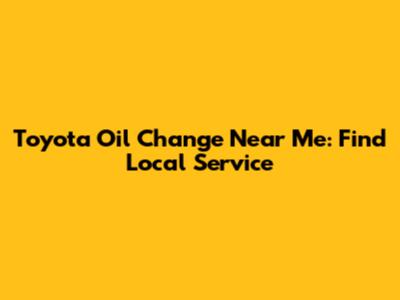 Toyota Oil Change Near Me: Find Local Service