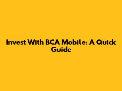 Invest With BCA Mobile: A Quick Guide