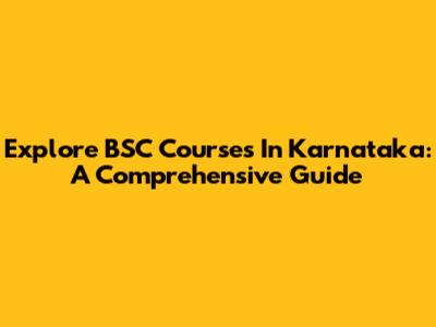 Explore BSC Courses In Karnataka: A Comprehensive Guide