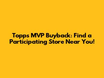 Finding a Topps MVP Buyback store locator can be a bit of a challenge, but with a little persistence and the tips outlined above, you should be able to track down a participating store near you. So get out there, dust off those cards, and turn them into something new! Happy collecting!