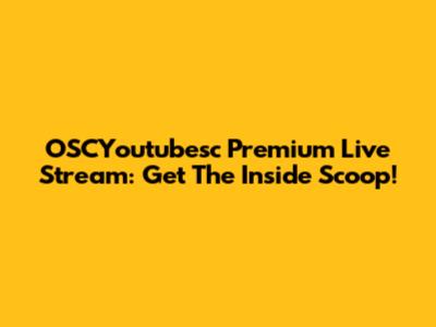 OSCYoutubesc Premium Live Stream: Get The Inside Scoop!