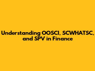 Navigating the world of finance can feel like decoding a secret language. There are so many acronyms and specialized terms that it's easy to get lost. Today, we're going to break down three such terms: OOSCI, SCWHATSC, and SPV. These are all important concepts in finance, and understanding them can give you a clearer picture of how the financial world works. Let's dive in and demystify these acronyms, one by one.