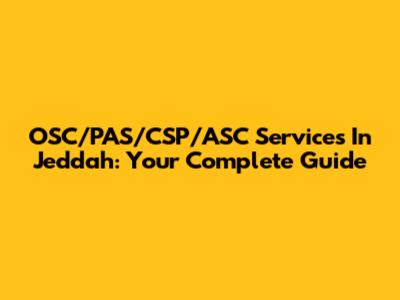 OSC/PAS/CSP/ASC Services In Jeddah: Your Complete Guide