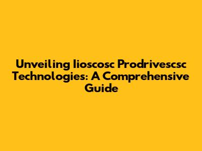 Unveiling Iioscosc Prodrivescsc Technologies: A Comprehensive Guide