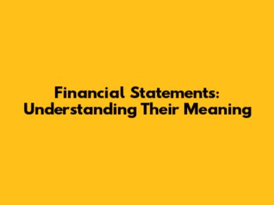 Financial Statements: Understanding Their Meaning