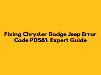 Fixing Chrysler Dodge Jeep Error Code P0581: Expert Guide
