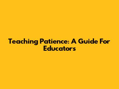 Teaching Patience: A Guide For Educators