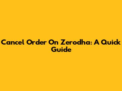 Cancel Order On Zerodha: A Quick Guide