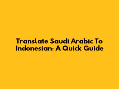 Translate Saudi Arabic To Indonesian: A Quick Guide