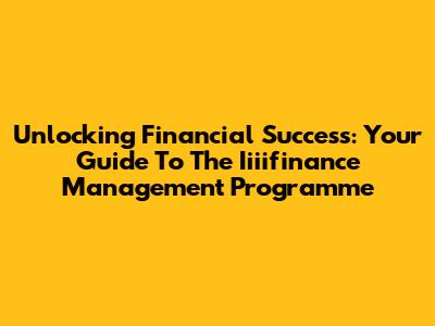 Unlocking Financial Success: Your Guide To The Iiiifinance Management Programme