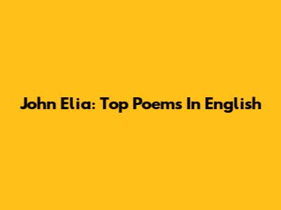John Elia: Top Poems In English
