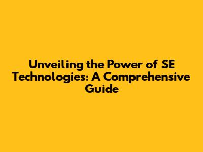 What are SE Technologies, Anyway?
