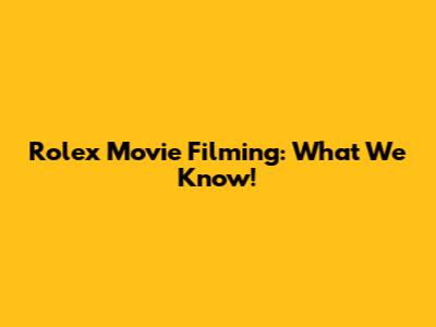 Rolex Movie Filming: What We Know!