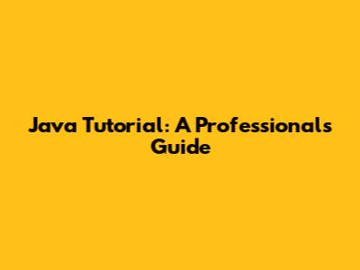 Java Tutorial: A Professional's Guide