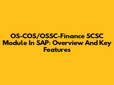 OS-COS/OSSC-Finance SCSC Module In SAP: Overview And Key Features