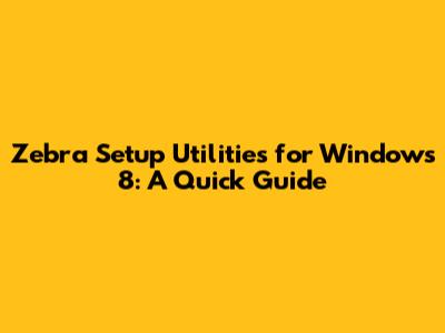 Hey guys! Today, we're diving deep into something super practical for anyone working with Zebra printers, especially if you're still rocking Windows 8. We're talking about the Zebra Setup Utilities for Windows 8. Now, I know what you might be thinking – "Windows 8? Seriously?" But believe it or not, there are still plenty of folks out there using it, and getting your printer set up correctly is crucial for smooth operations. This guide is designed to walk you through everything you need to know, from installation to basic configuration, ensuring your Zebra printer plays nice with your Windows 8 machine. We'll cover the essential steps, common hiccups, and some nifty tips to make your printing life a whole lot easier. So, grab a coffee, settle in, and let's get your Zebra printer up and running!